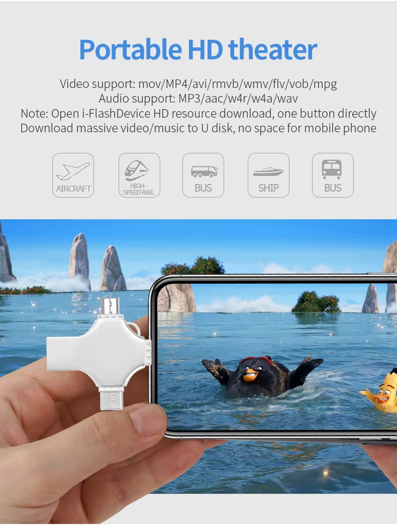 No matter where you are, you can enjoy the convenience brought by this portable four-in-one high-speed flash drive!